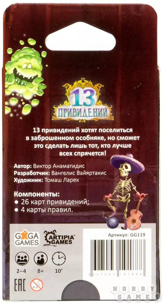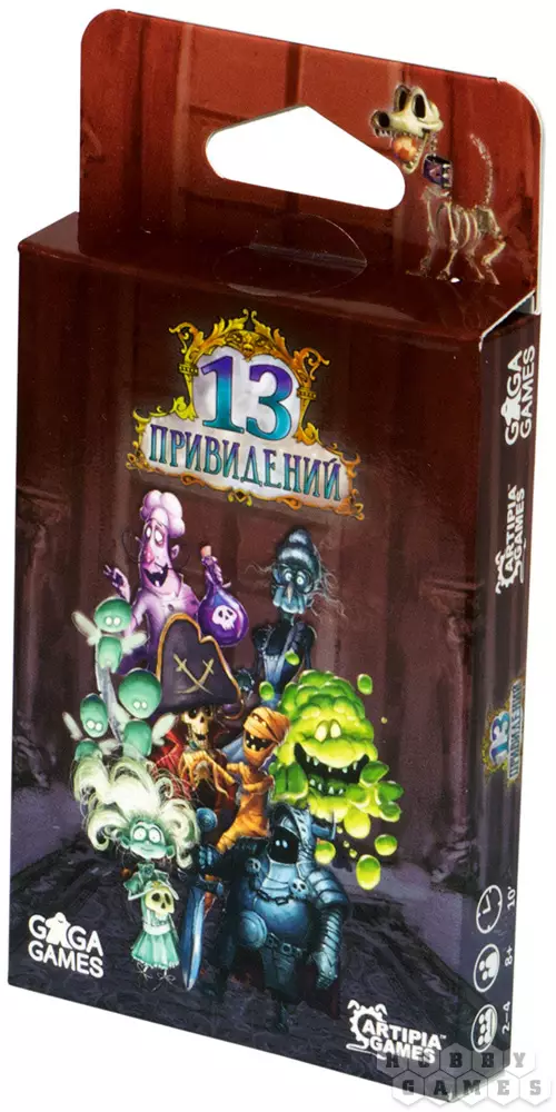 "13 привидений" — быстрая весёлая игра про беспокойных духов. Задача игроков — помочь призракам обрести покой в заброшенном доме, но для этого духов придётся хорошенько спрятать.