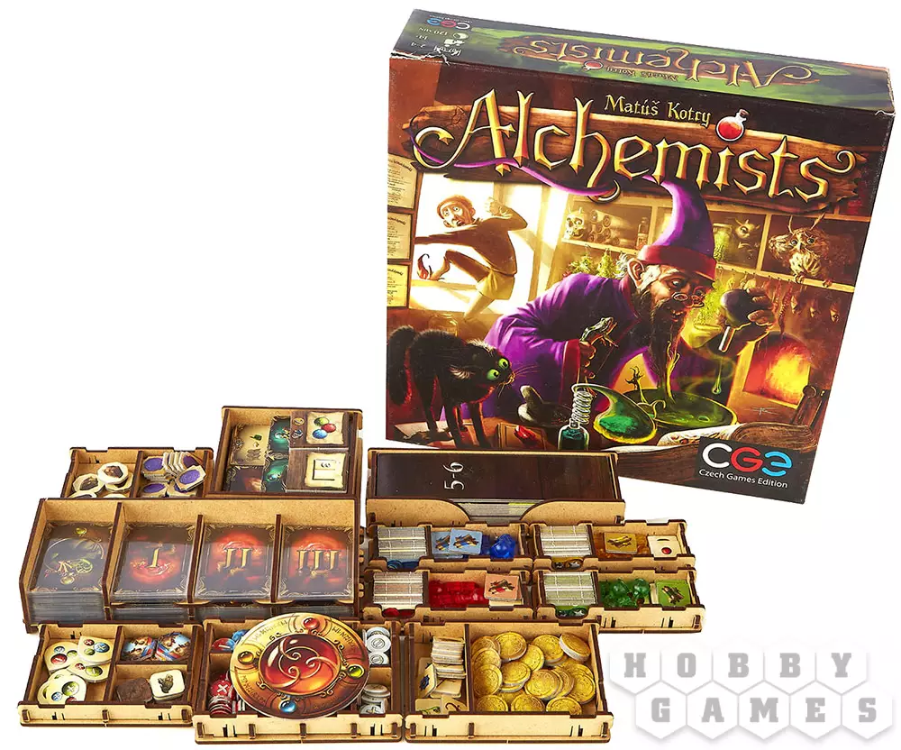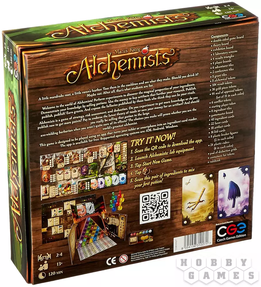 "Алхимики" – стратегическая игра, в которой риск и дедукция занимают одинаково важное место. Стоит ли продолжать эксперименты, чтобы собрать больше доказательств, или лучше опубликовать непроверенную теорию, но получить больше очков? Заплатить ли деньги за развитие чужой теории о жабах, или подкопить и купить артефакт? Точно ли нужно продавать это зелье здоровенному варвару с двуручным топором, если вы даже не догадываетесь, что тут намешано? Ваши решения определят, станете ли вы величайшим алхимиком в мире.