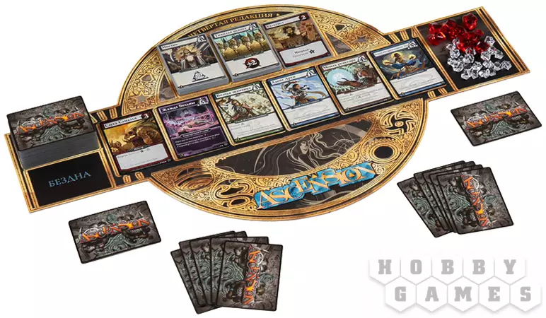 Ascension – классический колодостроитель, ставший основой для многих современных игр. Перед вами более сотни тщательно прорисованных карт, которые представляют героев, могущественные конструкции и опасных монстров, а также пластмассовые фишки и игровое поле для динамичных партий. Игроки собирают свои колоды, используя четыре фракции, каждая из которых дарит бонусы и уникальные стратегии. Механики отточены временем – игра остаётся глубокой и соревновательной, но при этом понятной новичкам благодаря несложным правилам.