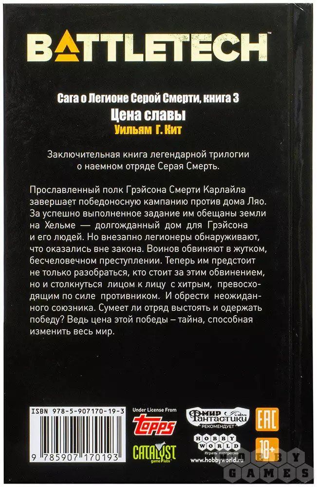 "Цена славы" (The Price of Glory) – третья книга Саги о Легионе Серой Смерти и четвёртый роман во вселенной BattleTech, написанный Уильямом Г. Китом-младшим в 1987 году. Вот уже 3 года наёмники Серого Легиона Смерти успешно выполняют контракты, а весь последний год заняты набегами на территории Дома Ляо. Но в конце военной кампании, вместо обещанной платы, Грэйсона Карлайла и его людей подставляют, обвинив в жестоком военном преступлении.