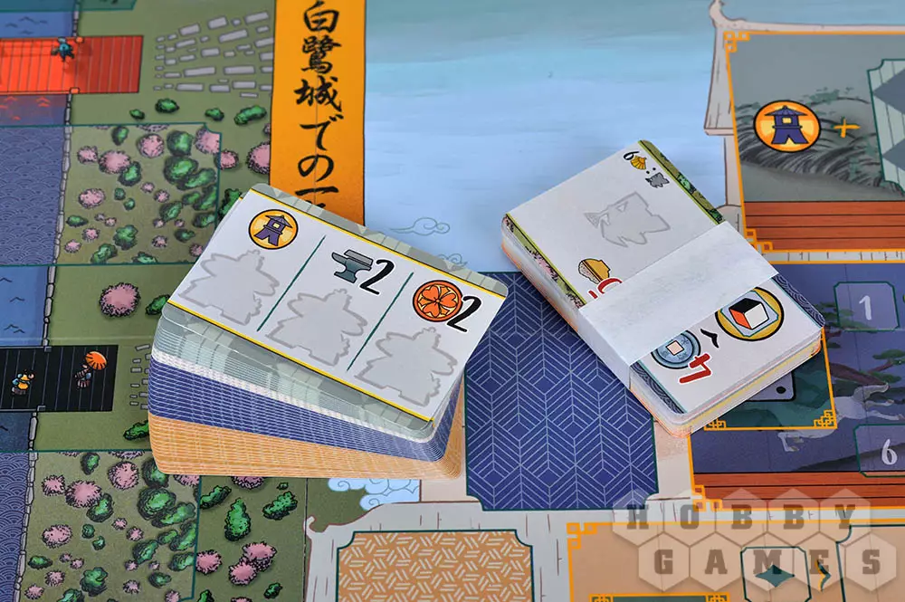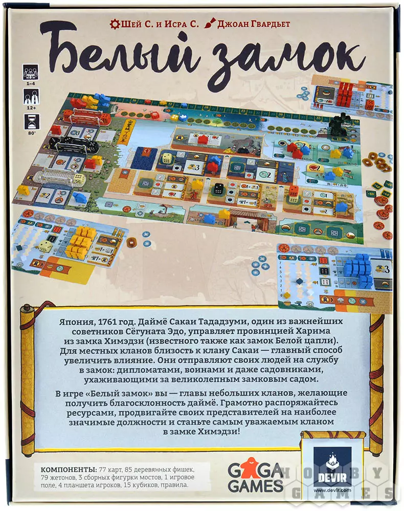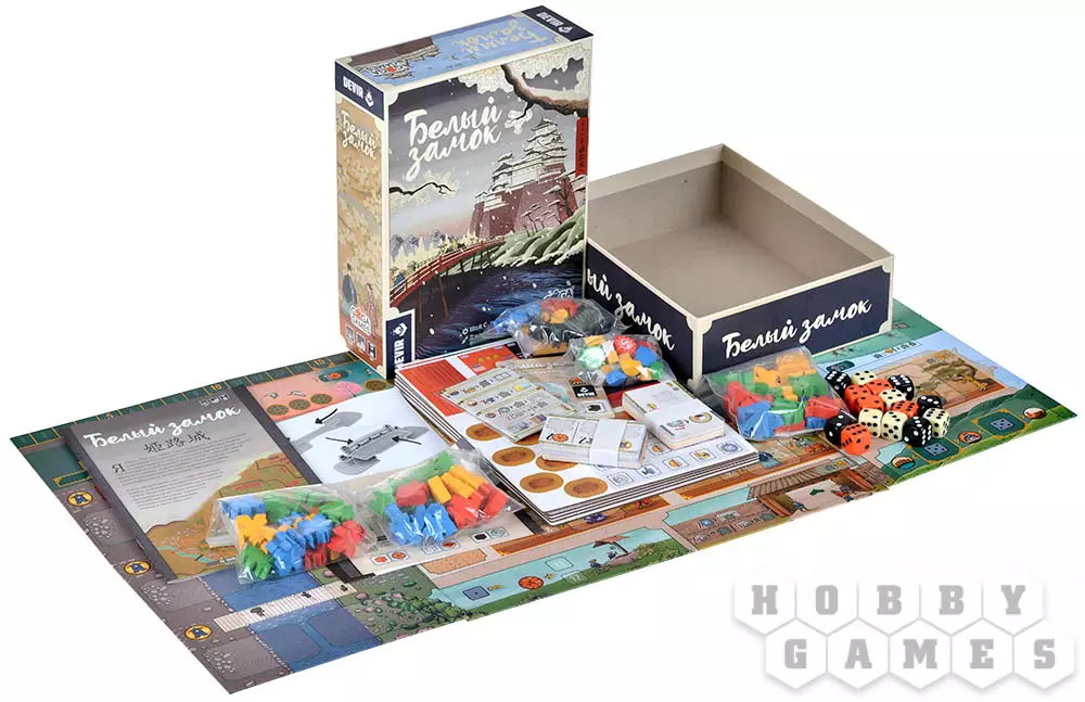 В настольной игре "Белый замок" вы выступите в роли глав этих самых кланов, желающих добиться расположения Сакаи Тададзуми. На это у вас будет всего 3 раунда, в течение которых вам предстоит грамотно распоряжаться своими рабочими. Но ваши придворные, садовники и воины не могут просто взять и прийти в замок, они должны проявить себя и заслужить право остаться в нём на службу. А для этого вам потребуется собирать различные ресурсы и грамотно ими распоряжаться. Ситуация на поле будет меняться каждый ход! Поэтому важно продумывать действия наперёд: занять нужную клетку на поле быстрее оппонента и получить много ресурсов, или сходить последним, получить меньше ресурсов, но запустить мощную последовательность действий.