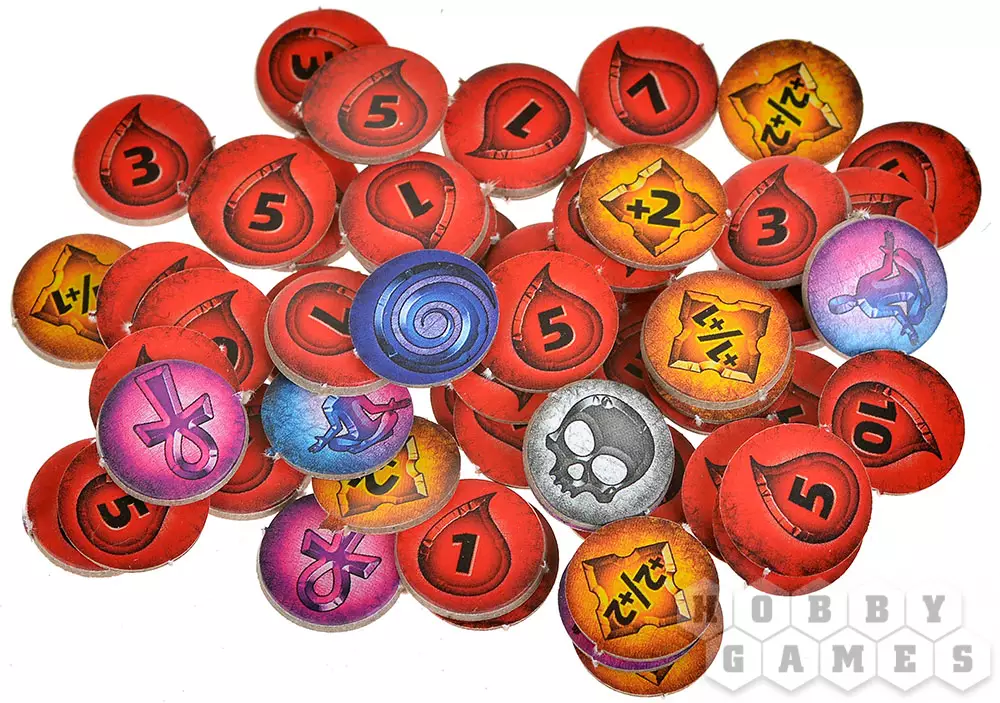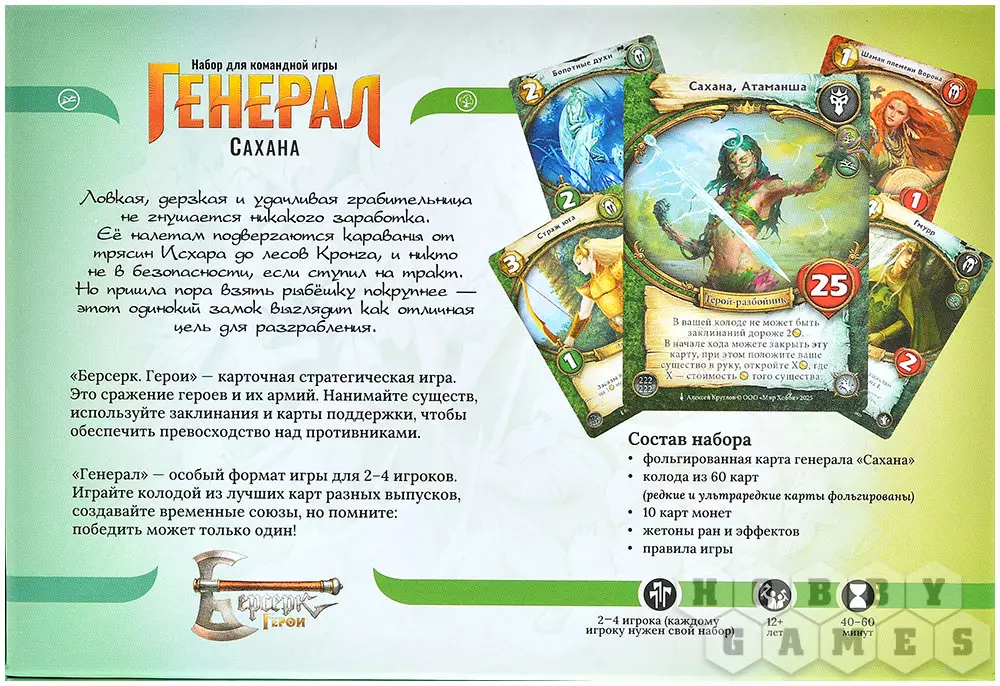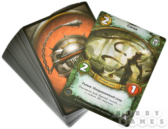 Размер карт: 63x88 мм (рекомендуются протекторы из данного раздела, 71 шт.)