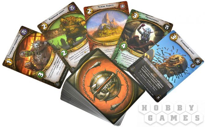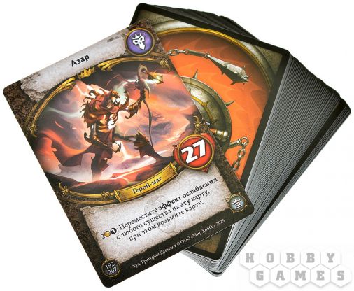 Весь игровой процесс, как вы уже поняли, строится на картах. В своей колоде вы должны иметь одну карту героя, которая является вашим альтер эго в игре, обладает определённым запасом жизни, способностью и стихией. Всего стихий пять: степи, горы, лес, болота, тьма. Карты без стихии – нейтральные. Помимо карты героя, в колоде вы можете иметь от 40 карт той стихии, к которой принадлежит ваш герой, но не более трёх копий одной и той же карты.