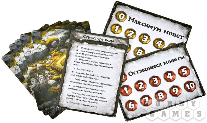 Начало хода – закрытые карты восстанавливаются, игрок получает новый маркер золота и одну карту в руку