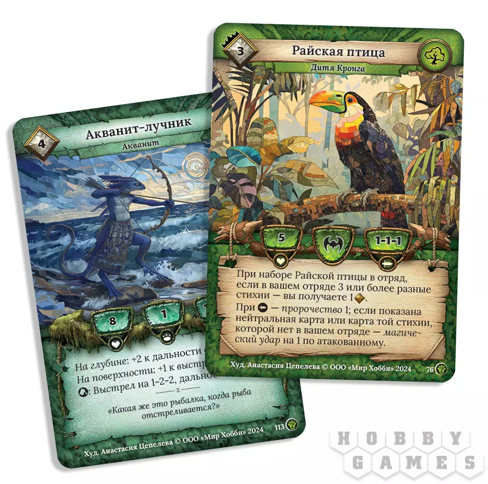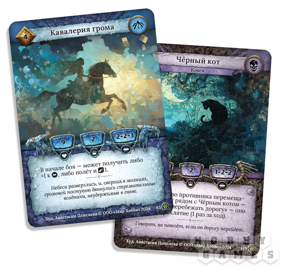 В начале игры оба игрока получают два вида кристаллов – золотые и серебряные. Это основной ресурс, который вы будете тратить на разыгрывание карт. Следом вы должны взять 15 карт из своей колоды. Сами карты бывают двух видов: элитные и рядовые. Оплатить стоимость элитной карты вы можете исключительно золотыми кристаллами, в то время как рядовых можно оплачивать как золотыми, так и серебряными. Когда вы получили карты, необходимо составить из них отряд: оплатив стоимость нужных карт, вы выкладываете их перед собой рубашкой вверх: до начала схватки противник не будет знать, чего от вас ожидать!