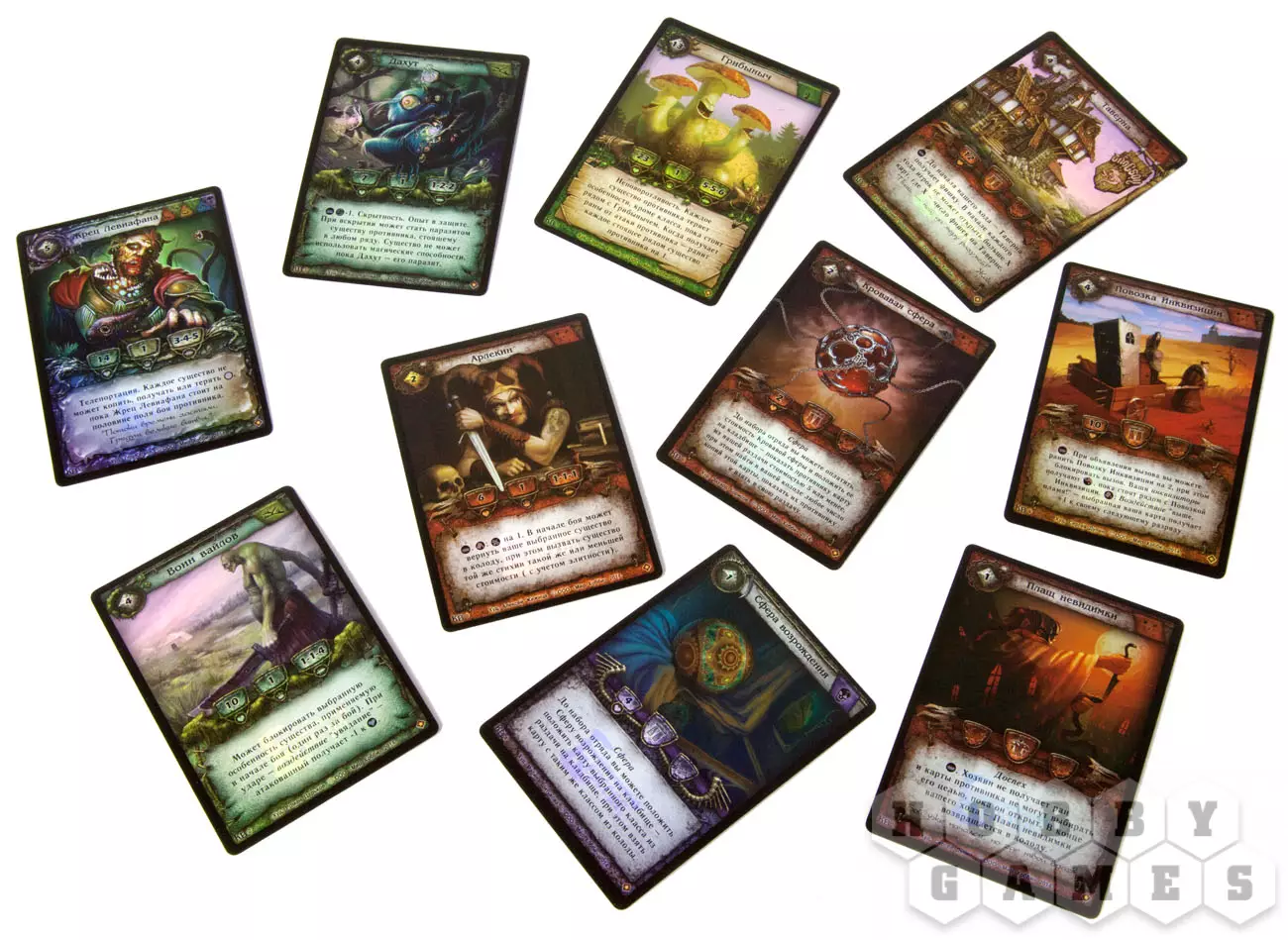 Hobbygames07.04.2015 16:403 ПРО-бустера выпуска «Ветра пустоши» 10 великих карт в фойловом исполнении: Дахут Арлекин Жрец Левиафана Воин вайлов Плащ невидимки Таверна Повозка Инквизиции Кровавая сфера Сфера возрождения Грибыныч