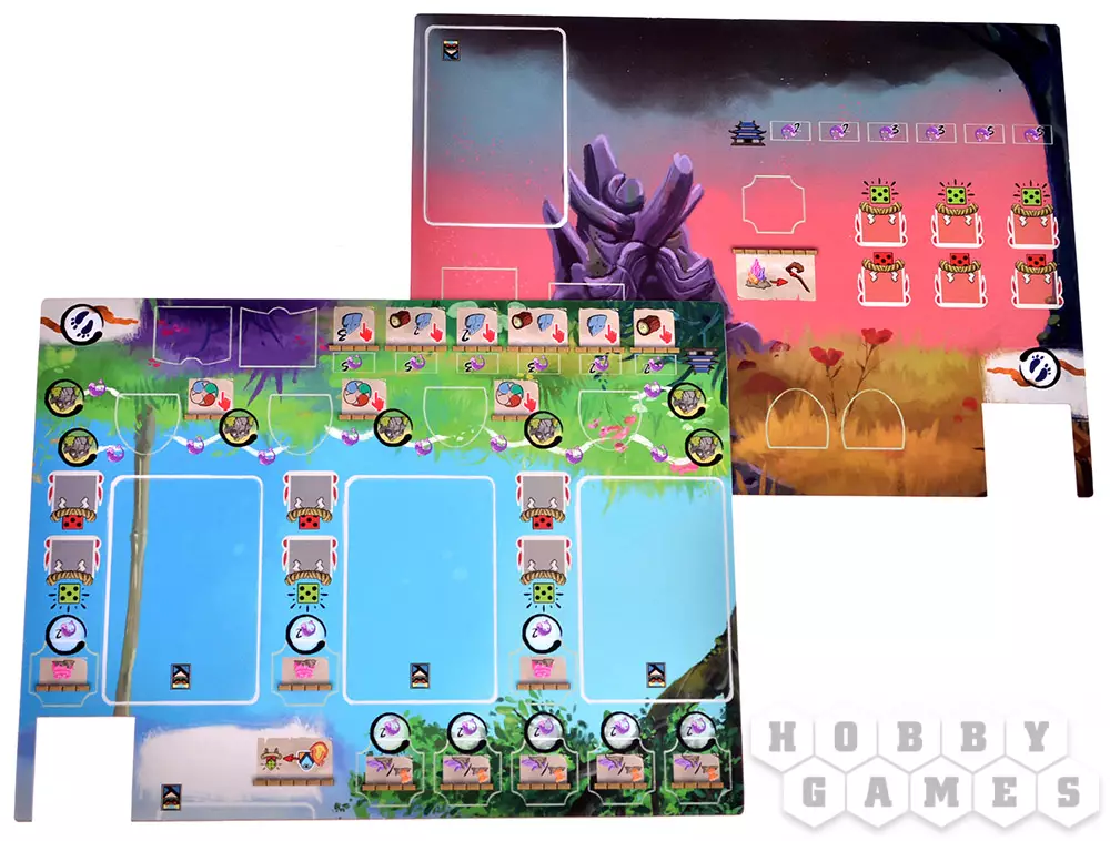 Использовать свободный кубик с личного планшета: ёкаи – это не только карты, самые могущественные из них представлены в игре ещё и кубиками. Чтобы использовать кубик – повысьте его значение на единицу, разместите в один из 5 регионов леса на игровом поле и выполните действие той ячейки, в которую разместили кубик. Учтите, что разместить кубик можно только в свободную ячейку