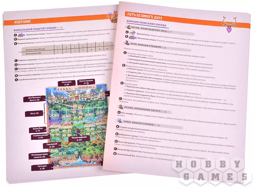 В фазу зимы все отправляются в спячку. Игроки по очереди проходят 5 этапов:
