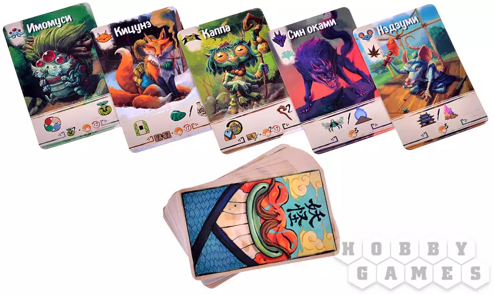 Разыграть карту ёкая со своей руки: ёкаи делятся на 5 разных типов, каждый из которых обладает своим эффектом. Выбирайте духа-стража с умом, в зависимости от ситуации на игровом поле
