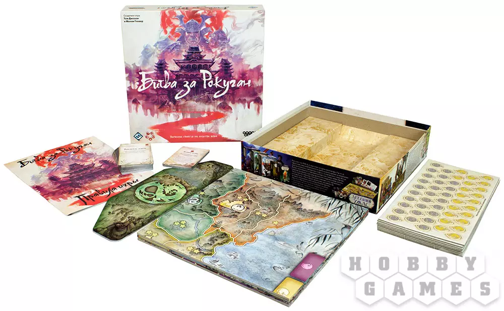 "Битва за Рокуган" – стратегическая военная игра про захват и контроль территорий в японском сеттинге для 2-5 игроков. Игроки берут на себя роли даймё (полководцами) Великих Кланов и ведут войны за землю Рокуган – древнюю землю, которая помнит множество битв и силу божественных духов. Вам предстоит предугадывать действия соперников и принимать грамотные решения. Игроки используют свои армии, флот, ловких синоби, дипломатию и другие трюки, чтобы захватывать провинции, оборонять их от посягательств враждебных кланов, и, конечно, заработать как можно больше чести. Грядут великие сражения, армии будут сталкиваться вновь и вновь, таинственная магия ками обрушится на врагов. Но помните – в живых останется лишь один даймё!