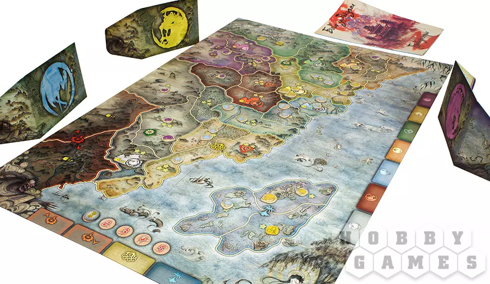 Вся игра проходит на большом игровом поле, поделённом на регионы и провинции, за которые и будет идти борьба. Каждый игрок берёт под свой контроль один из семи кланов, каждый из которых обладает уникальными особенностями и начинает игру со своей персональной столицей в одном из регионов. Помимо этого каждый игрок обладает фирменной ширмой, чтобы скрыть все свои действия от неприятеля, и картой тайной цели.