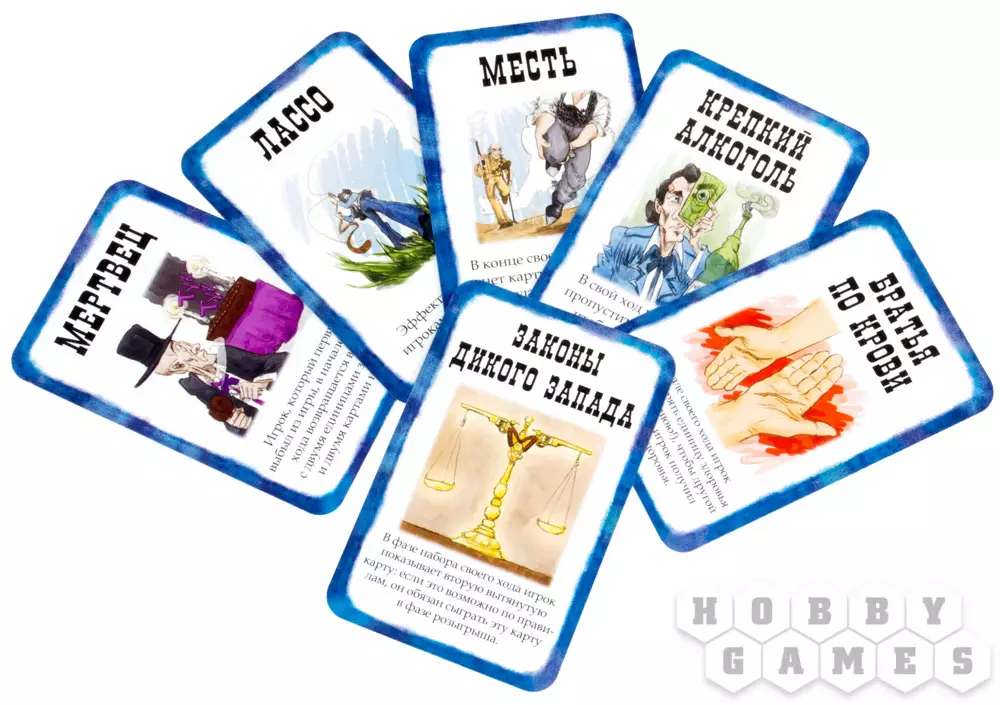 - любой игрок, убивший бандита, берёт 3 бонусные карты. Даже если убийцей был сам бандит. Это Дикий Запад, не забывайте.