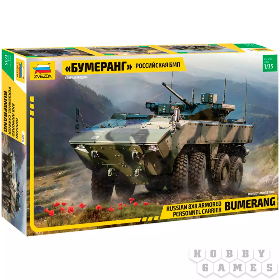 БМП "Бумеранг" – перспективная российская боевая машина пехоты, построенная на базе многофункциональной платформы нового поколения. Она сочетает высокую мобильность, защиту и огневую мощь для перевозки бойцов и их защиты в боевых условиях.