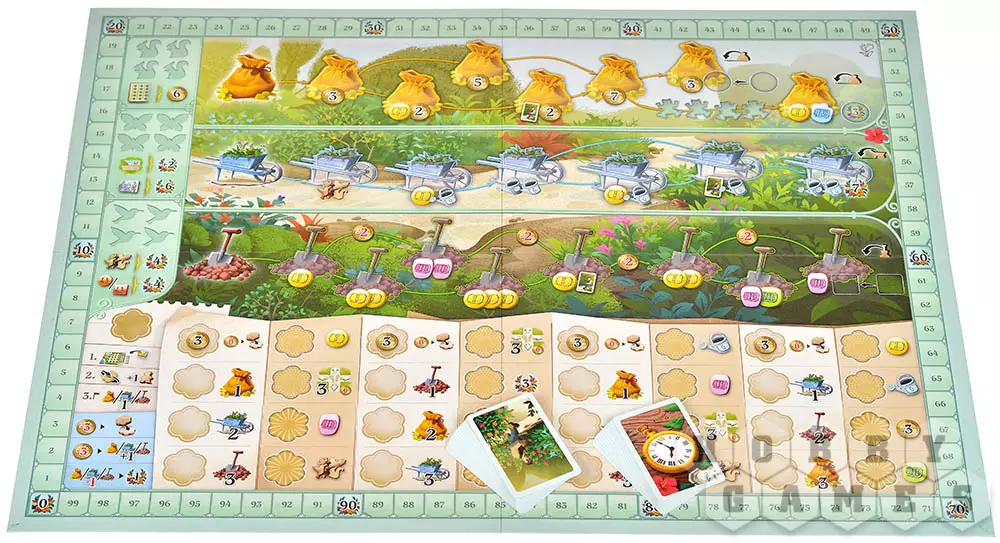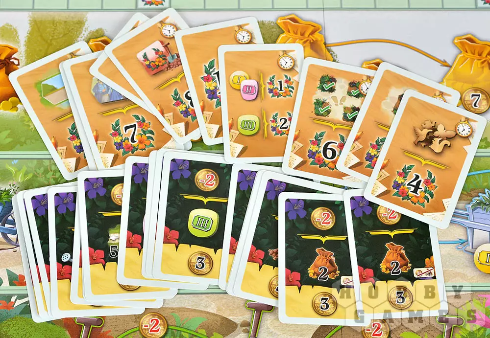 Три этапа игры раскрываются как лепестки цветка. В первом раунде вы закладываете основу своего сада. Когда все участники доходят до края поля, начинается второй раунд – перевёрнутые жетоны действий открывают новые возможности. Финальный этап – это последний шанс проявить мастерство, продвигаясь по счётчикам для получения решающих очков.