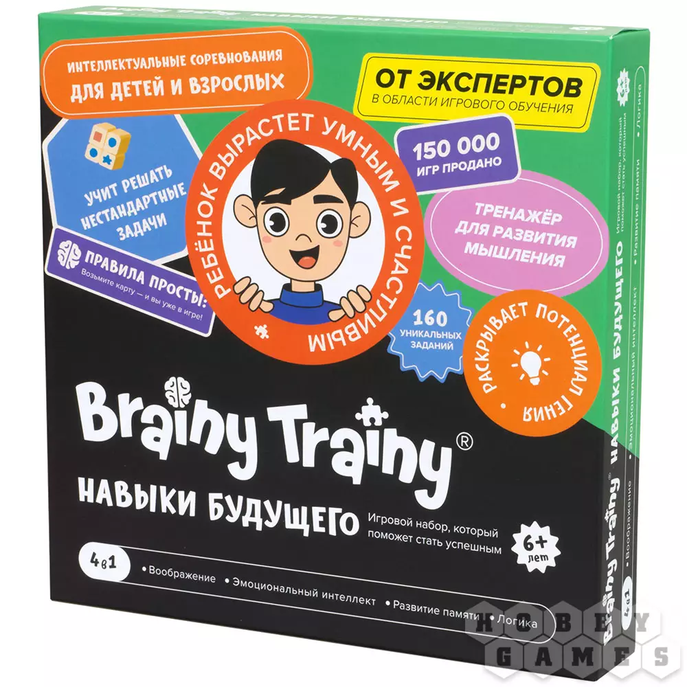 "Brainy Trainy: Навыки будущего" – включает в себя 160 карточек с заданиями сразу из нескольких игр серии: "Развитие памяти", "Эмоциональный интеллект", "Логика" и "Воображение". Каждый ребёнок по-своему гениален, важно лишь правильно раскрыть его потенциал. Чтобы обучение не превратилось в мучение и не доставляло скуку, и были разработаны игровые развивающие наборы. Игровой процесс не только стимулирует интерес и вовлечённость ребёнка, но и способствует лучшему восприятию и усвоению новой информации.