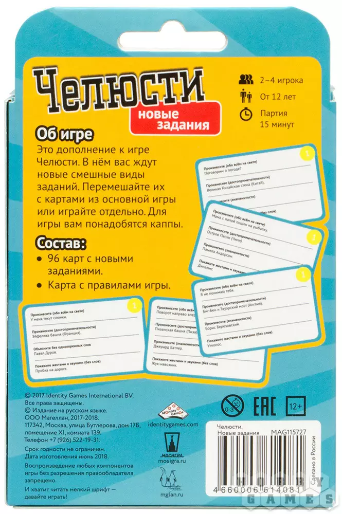 Дополнение "Челюсти. Новые задания" удивит вас новыми карточками с новыми задачками и словами, которые произнести без подготовки невозможно!