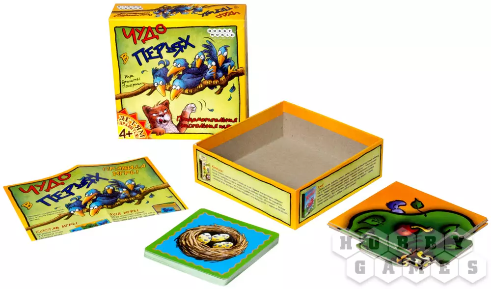 Настольная игра "Чудо в перьях" — это озорная детская игра для 2-4 игроков, в которой вам в прямом смысле придётся забрасывать птиц на крону дерева. С помощью этой игры вы определите самого ловкого в вашей дружной компании, а простые правила и занимательный геймплей будут интересны и понятны не только детям от четырёх лет, но и их родителям!