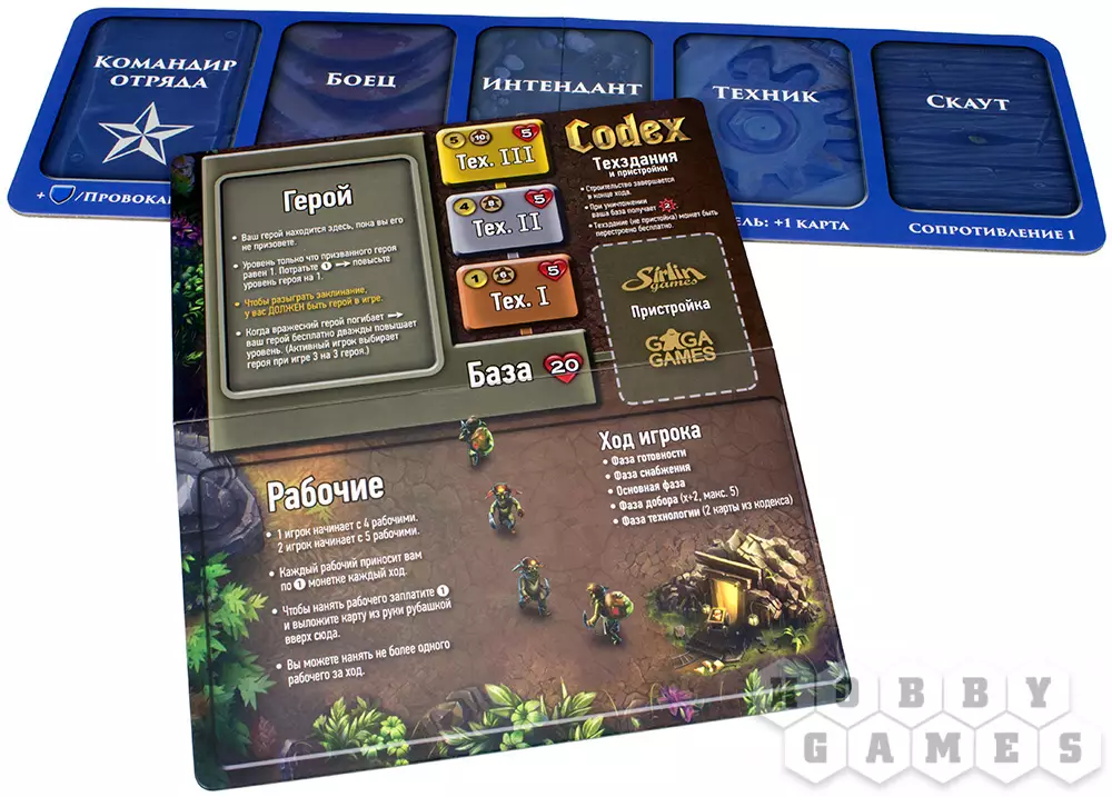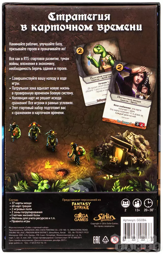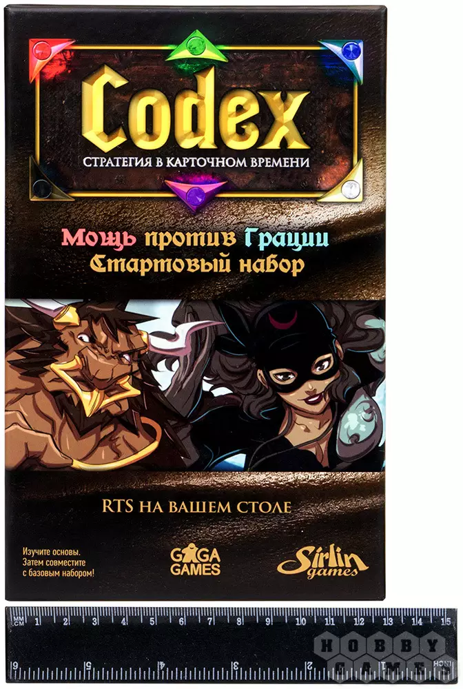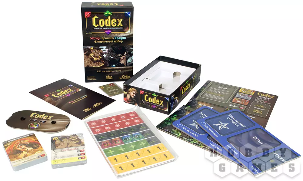Стартовый набор Codex идеально подходит тем, кто хочет приобщиться к настольным карточным играм с колодостроительной механикой. Этот набор предполагает только дуэльное сражение для двух игроков, но при этом обучит вас главным правилам и техникам основной версии Codex. Ваша задача – уничтожить базу противника, сохранив при этом свою. Выбирайте своего героя – в игре доступны два нейтральных персонажа, не принадлежащих ни к одной из фракций Codex. Кто вам ближе – Трок Крушак, герой Мощи или же Ривер Монтойя, герой Грации?