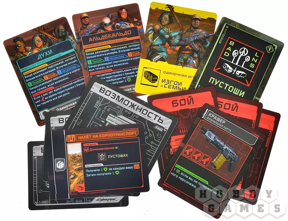 "Cyberpunk 2077: Банды Найт-Сити" – это соревновательная настольная игра для 1-4 участников. Каждый из вас возглавит безжалостную банду, пытающуюся единолично прибрать к рукам криминальное подполье блистательного ада под названием Найт-Сити. Вступайте в схватки за власть над городом с другими предприимчивыми бандами в мясном и сетевом пространстве. История запомнит лишь сильнейших, а путь к славе им проторит репутация на улицах.