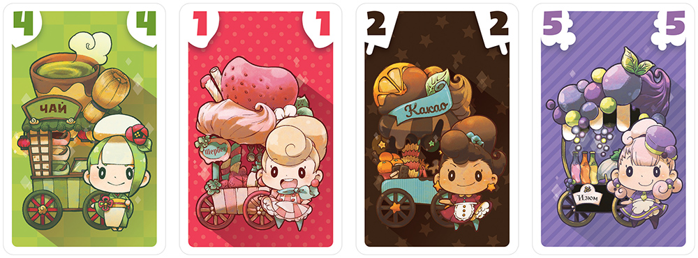 Победитель забирает все сыгранные карты себе в сброс и главный приз – шарик мороженого. Цвет шарика определяется цветом карт в круге или выбирается победителем, если цвета были разные.