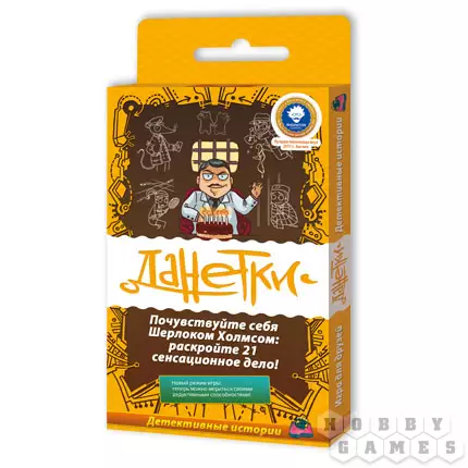 Третье издание популярной настольной игры "Данетки" собрало в себе 21 лучшую детективную историю из серии. Приготовьтесь к серьёзной проверке вашей сообразительности, интуиции и логики. В каждом кону у ведущего есть несколько подсказок для игроков, которые, однако, отнимают призовые очки. Победителем становится тот, кто разгадает больше историй при меньшем количестве использованных подсказок.
