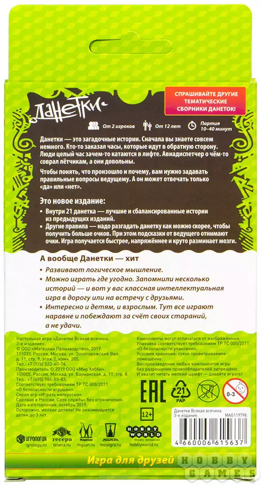 Развивайте своё логическое мышление вместе с "Данетками Всякая Всячина". Перед вами уже третье издание знаменитой словесной игры и двадцать одна лучшая история из предыдущих игр.