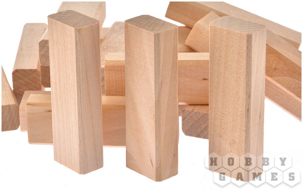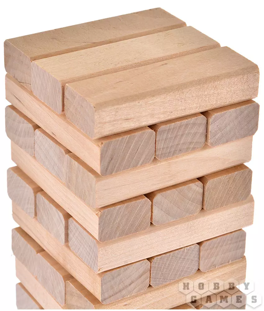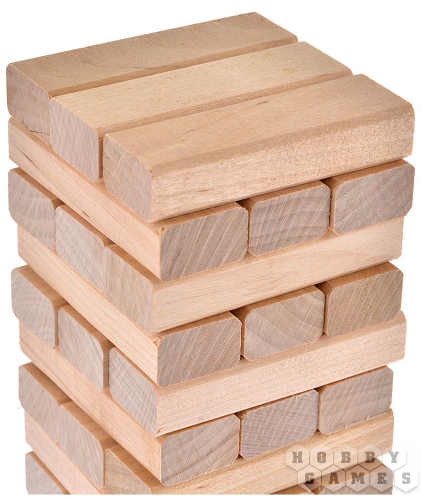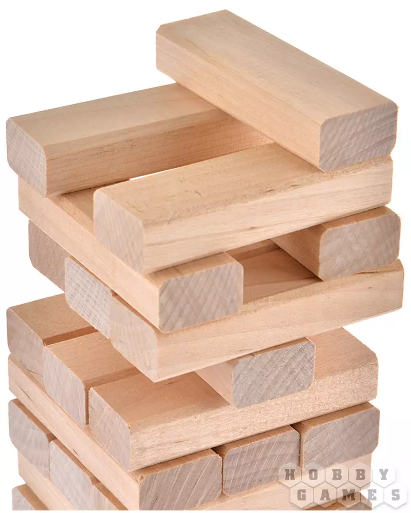 "Деревяшки" – это весёлая и простая игра, правила которой легко освоить за минуту, а играть в неё можно практически в любой компании. Аккуратно вытаскивать деревянные брусочки из многоэтажной конструкции, стараясь, чтобы она не развалилась, весело как в уютной семейной атмосфере, так и на лихой дружеской вечеринке. Азарту могут добавить и самостоятельно добавленные правила – например, можно тащить бруски только левой (а левшам – правой) рукой, или выпивать по рюмке после каждого успешного хода. Играть в "Деревяшки" можно практически любым составом – двух человек уже достаточно, а в больших компаниях драйва ещё больше. Скорее собирайте игроков и вперёд – но осторожнее, ведь башня легко может рухнуть!