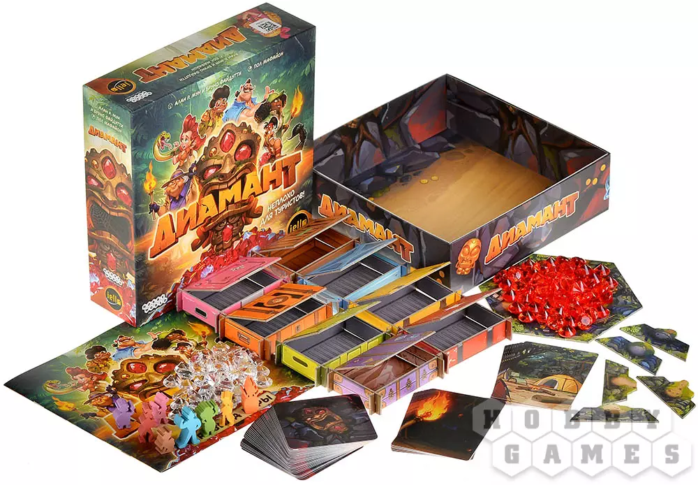 "Диамант" – это динамичная семейная настольная игра про риск и жадность, получившая новое яркое оформление. Вас ждут стильный мультяшный дизайн, харизматичные персонажи и удобное поле с подвижными жетонами входов в пещеру. Игра идеально подойдёт для семьи, компании друзей и вечеринок, легко объясняется новичкам и при этом каждый раз создаёт новые напряжённые ситуации за столом. Неоднократный лауреат международных премий и заслуженно считается одной из лучших игр для знакомства с настольным хобби.
