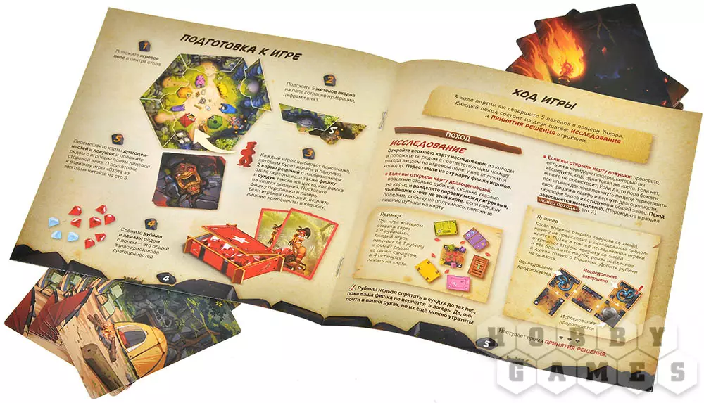 Если удача временно от вас отвернулась и вы обнаружили ловушку, не расстраивайтесь – пока что ничего не происходит, – но переходите в режим особой готовности. Ещё одна аналогичная опасность, и придётся бросить честно добытое и спасаться бегством. Впрочем, в любой момент, перед открытием следующей карты, вы можете сказать себе "хватит" и покинуть пещеру, забрав накопленные кристаллы (и всё то, что вы оставили ранее) в безопасный лагерь. Несколько игроков решили спасовать одновременно? Придётся, конечно, разделить остатки добычи поровну, зато вы точно избежите больших рисков и как минимум не останетесь с пустыми руками.