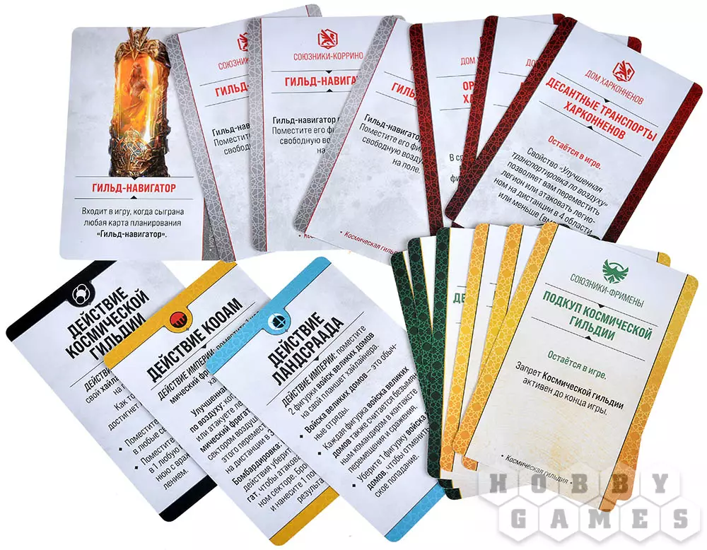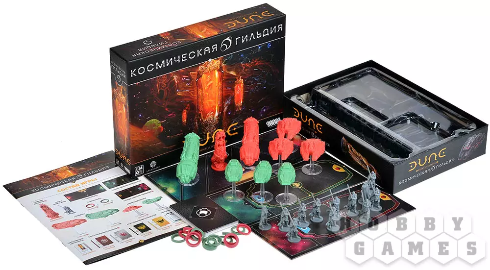 "Космическая гильдия" – это дополнение к стратегической настольной игре "Дюна: Война за Арракис". Теперь в вашем распоряжении появится ещё один очень важный актив, который позволит усовершенствовать стратегию и продумать новые тактические повороты. Вы сможете воспользоваться хайлайнерами, позволяющими перемещать легионы на куда большие расстояния, а также воззвать к помощи великих домов. Теперь и так не угасающий конфликт разгорится с новой силой, увлекая вас в мир ожесточённого планирования.