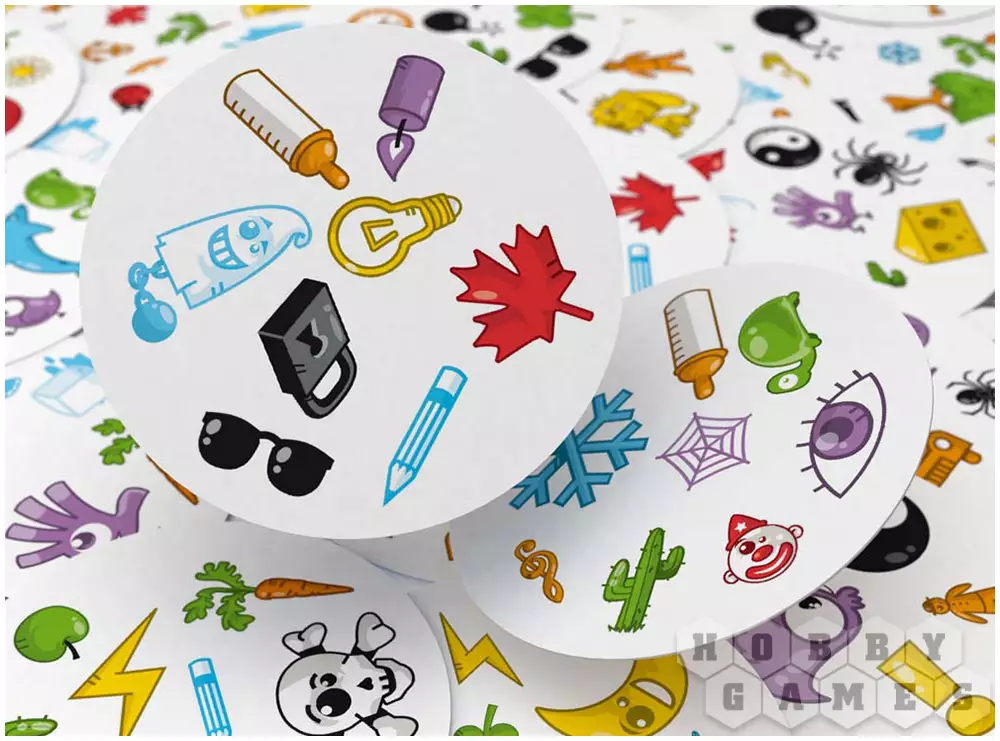 Вы сможете сыграть в целых 5 мини-игр с совершенно разными целями: от сбора карточек до избавления от них. Так, например, в одном из режимов вы будете одновременно изучать свои карточки в поисках изображений, которые совпадут с символами на верхней карточке в общей колоде, расположенной по центру стола. Заметили совпадение? Назовите символ и получите право забрать карточку! Победит тот, кто лучше всех справится с такими задачами.
