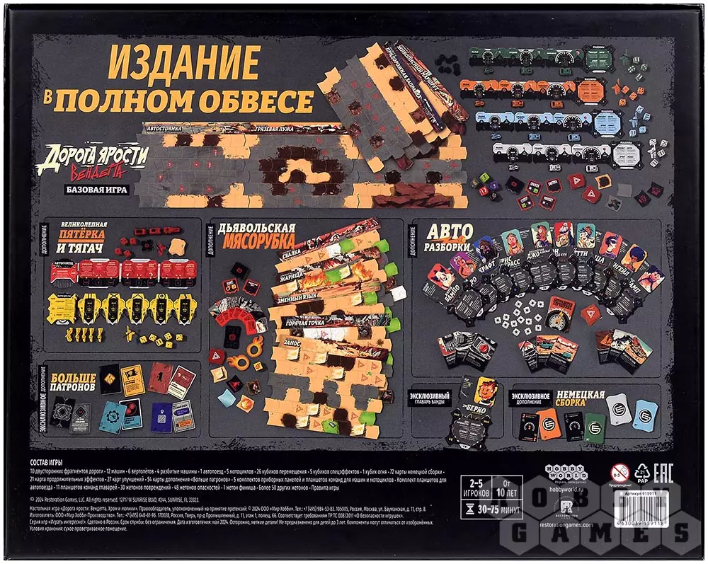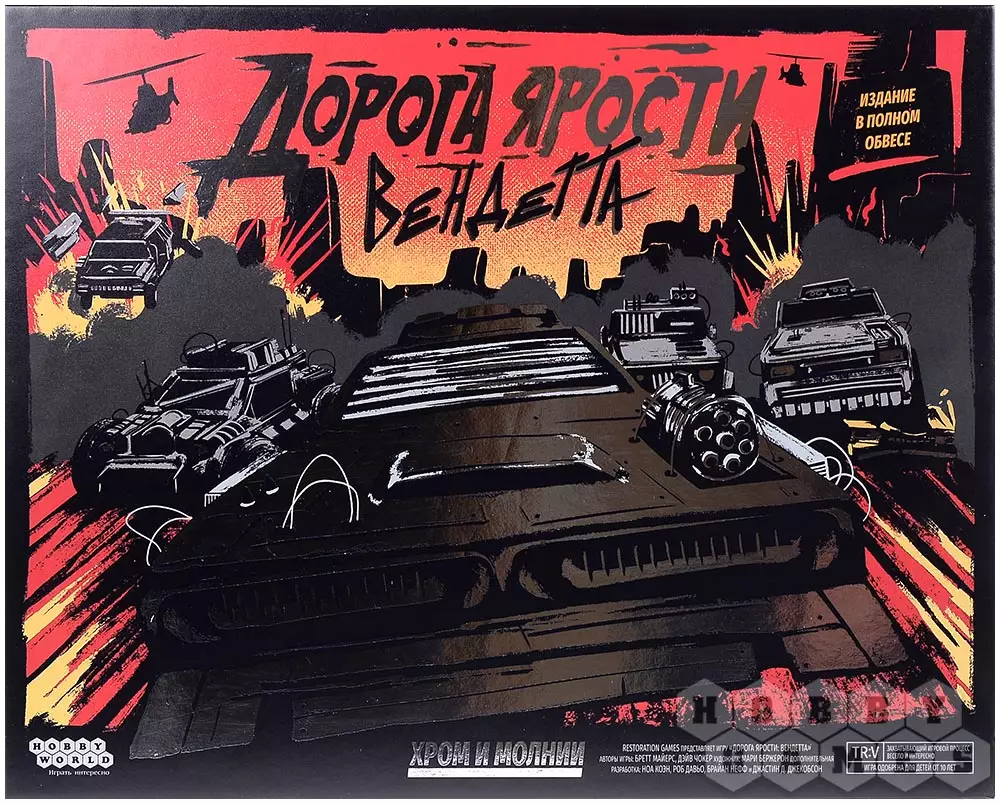 "Дорога ярости: Вендетта. Хром и молнии" – это издание, которое объединяет в себе базу "Дорога ярости: Вендетта" и целых 5 дополнений, из них 2 – эксклюзивные: "Авторазборки", "Дьявольская мясорубка", "Великолепная пятёрка и тягач", "Больше патронов" и "Немецкая сборка". Также в комплекте идёт уникальный главарь банды. Теперь вы сможете объединить особенности и препятствия всех дополнений в одной игре и в полной мере прочувствовать атмосферу ожесточённого заезда. Приготовьтесь покорять непредсказуемые трассы, уворачиваться от выстрелов и таранов банд-конкурентов, а также тщательно продумывать свой маршрут – ведь если не рассчитать скорость, можно спокойно вылететь в кювет и выбыть из гонки.