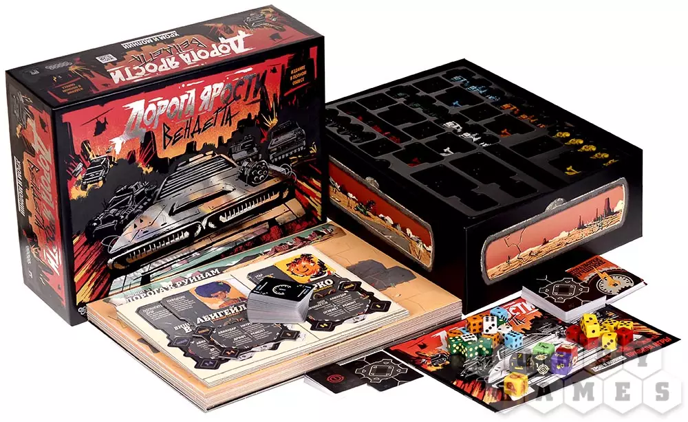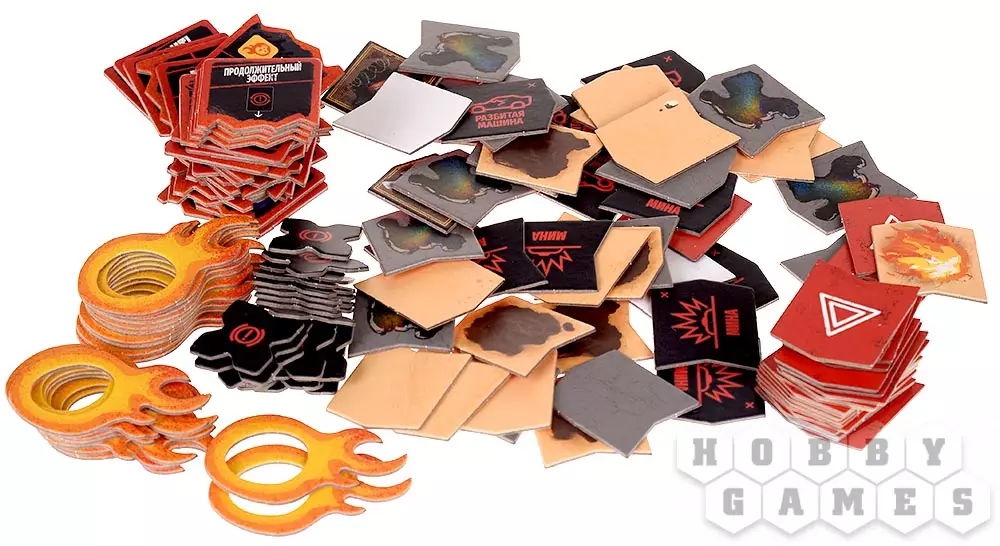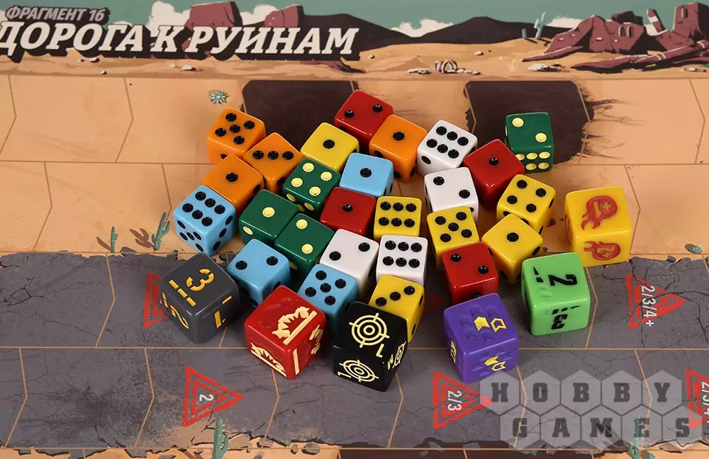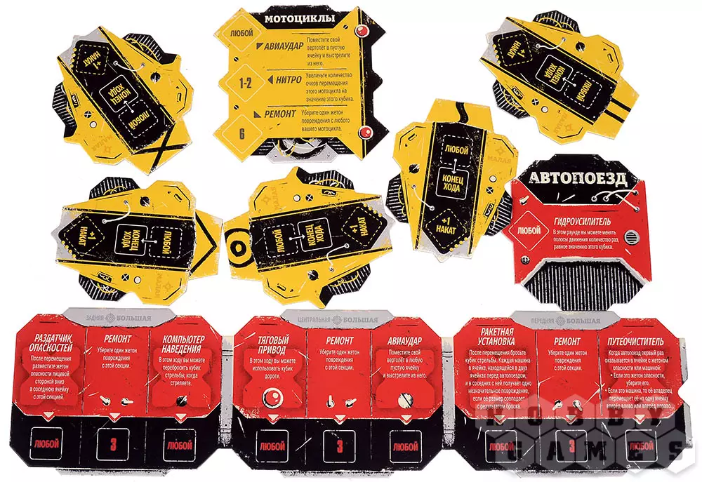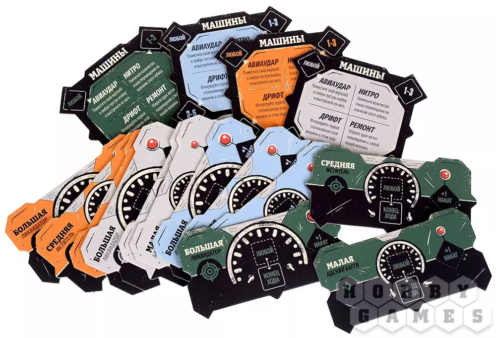 Вам также доступна стрельба – атака по транспорту, находящемуся в переднем секторе вашего авто. Успешность атаки проверяется с помощью кубика. С помощью стрельбы можно вывести из строя чужие машины. Если у игрока не останется ни одной исправной машины, он выходит из игры.
