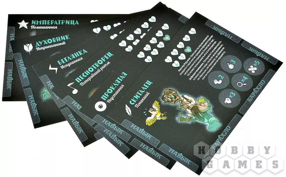 Размер карт: 69x119 мм (рекомендуются протекторы из данного раздела, 24 шт.)