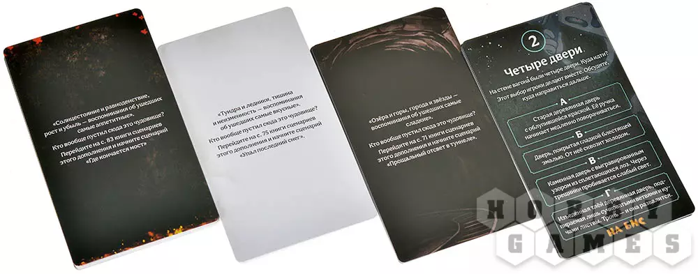 Перед тем как отправиться в путешествие, соберите своих бродяг – выберите их карты, поставьте фигурки на тёмное поле поезда и вручите каждому по три заветные монеты. Наполните старый узелок таинственными жетонами предметов – кто знает, что попадётся в дороге? Затем откройте книгу сценариев на первой истории – "Убежище от бури" – и расставьте призраков, объекты и жетоны событий так, как велит легенда.