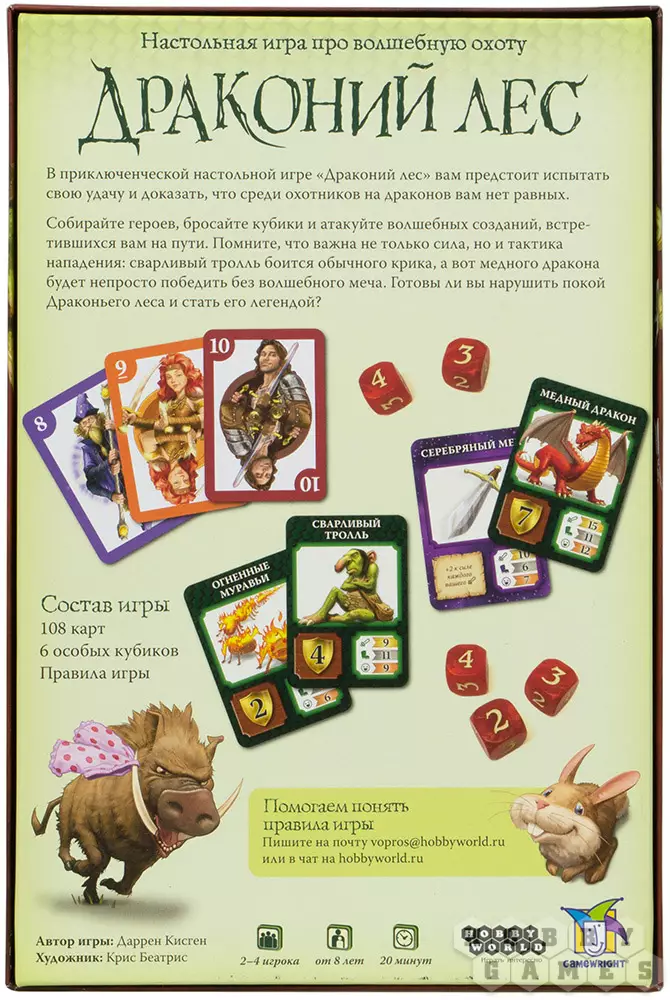 Ок05.02.2021 19:20Очень приятная и понятная игра, хорошо подойдет для игры в компании детей, да и взрослым понравилось. На второй или третьей игре уже ощущался дух светлой фэнтезийной сказки :) -