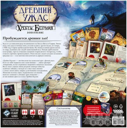 "Хребты Безумия" – это новое дополнение к настольной мистической игре "Древний ужас", которое отправляет игроков в Антарктику по следам исследовательской экспедиции Мискатоникского университета. Дополнение, его сеттинг и сюжет взяты из одноимённого романа Говарда Лавкрафта.