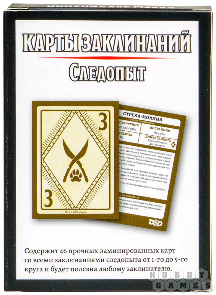 Они великолепно знают природу, а поэтому могут и творят заклинания. В выборе заклинаний они делают ставку на скорость и незаметность, чтобы помочь себе в охоте. Вся магия следопытов содержится в этом наборе карт заклинаний, которые класс Следопыт использует в ролевой игре Dungeons & Dragons пятой редакции.