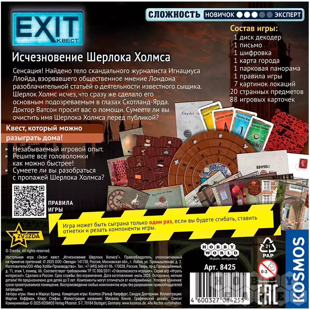 Серия игр "EXIT-Квест" основана на популярном жанре приключенческих квестов в реальности. Решив серию увлекательных и необычных загадок, вы сможете найти выход из опасной ситуации. Внутри каждой коробки вас ожидает незабываемая история и уникальное приключение для весёлой компании, обожающей логические задачки.