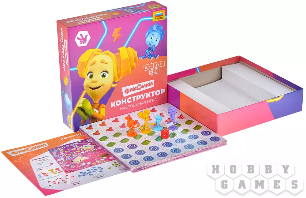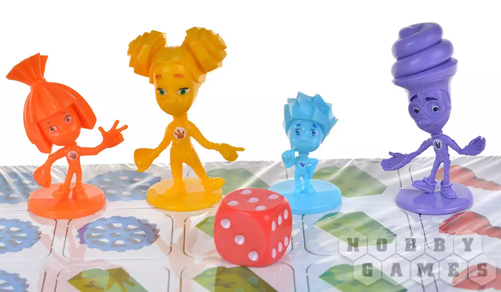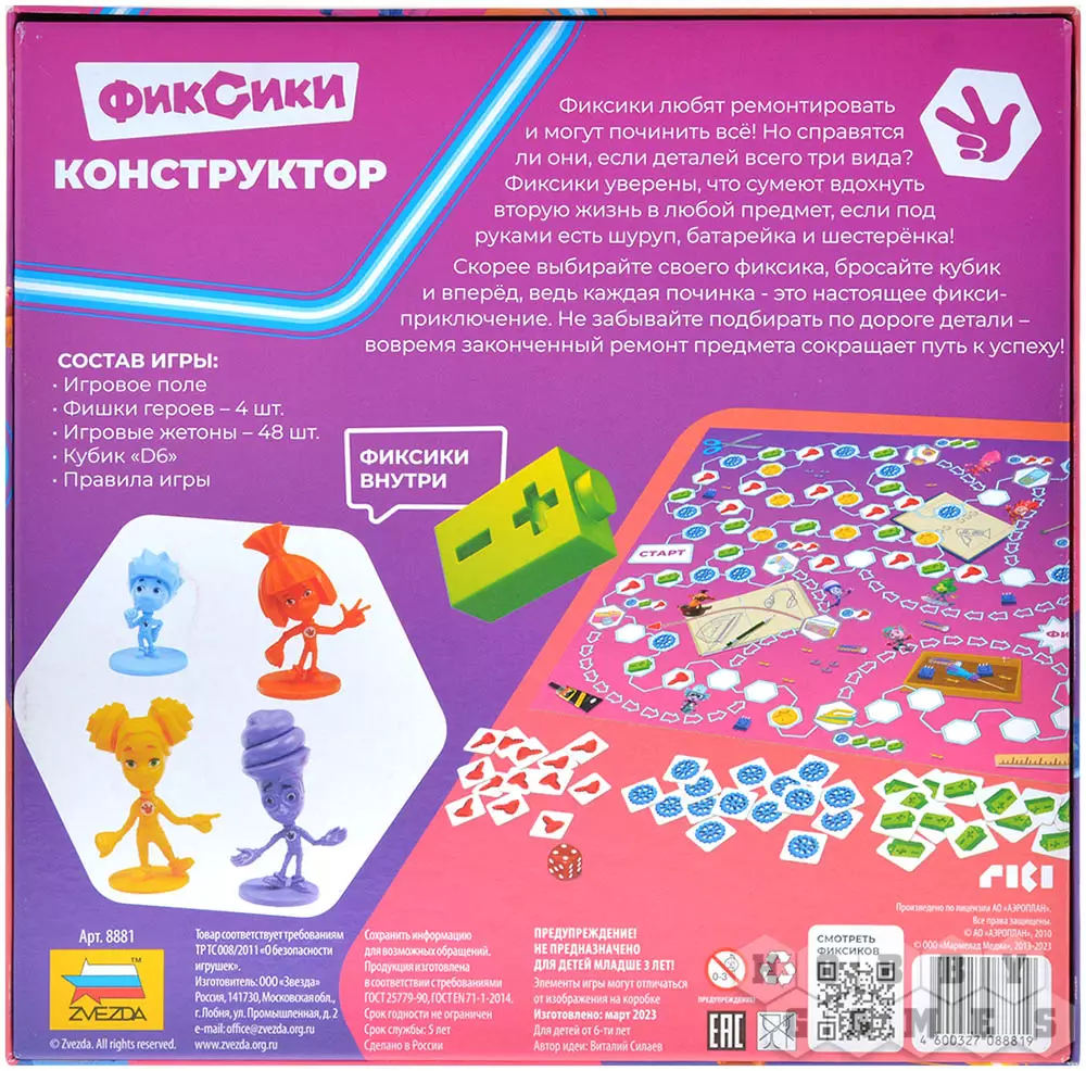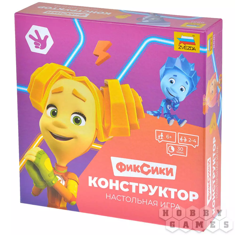 В детской игре "Фиксики: Конструктор" юные настольщики будут управлять фиксиками, которые бегают по дому в поисках деталей для починки сломанных вещей. Чтобы утюг снова заработал, нужны 3 батарейки и шестерёнка, а для фотоаппарата потребуются батарейка, шестерёнка и шуруп. Чтобы фиксик побежал за деталькой, бросьте кубик и передвиньте его на выпавшее количество клеток. Остановились на шурупе? Возьмите его жетончик! Собрали полный комплект нужных запчастей? Скорее бегите чинить прибор! За каждую починку фиксик получит заметный скачок по полю и сможет обогнать своих товарищей.