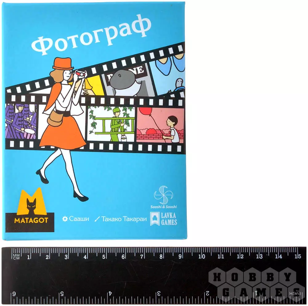 В настольной игре "Фотограф" игрокам предстоит запечатлеть кадры из жизни города. Перемешайте карты кадров и выложите их на стол согласно раскадровке (то есть, памятке). В начале игры каждый участник набирает на руку до 5 карт кадров, при этом он их сохраняет в том порядке, в котором взял (первая взятая карта должна быть крайней левой). После этого, начиная с первого игрока, все по очереди выполняют 4 действия: выбирают сюжет (берут на руку от 1 до 3 карт), перематывают плёнку (перемещают 1 карту в руке), фотографируют (разыгрывают от 1 до 3 карт) и проверяют раскадровку (выкладывают новые карты).