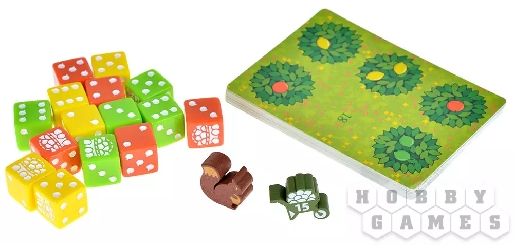 Возьмите 18 карт деревьев, перемешайте их и поделите на 2 равные стопки по 9 карт: для игры вам потребуется только одна из них. Откройте верхнюю карту из стопки и поместите её в игровую область – это начало вашего сада, – а затем возьмите на руку 2 карты. Всё готово к началу игры. Чтобы получать урожай и зарабатывать победные очки, нужно выкладывать карты таким образом, чтобы деревья с плодами одного цвета накрывали друг друга. Пример: вы разыграли карту и накрыли апельсиновое дерево с двумя плодами апельсиновым деревом с одним плодом – у вас 3 апельсина! Чтобы это отметить, разместите на верхнее дерево оранжевый кубик со значением 3. Разыгрывая карты, вы можете поворачивать их как угодно на 90 и 180 градусов. Главное, чтобы накрываемые деревья были с одинаковыми плодами.