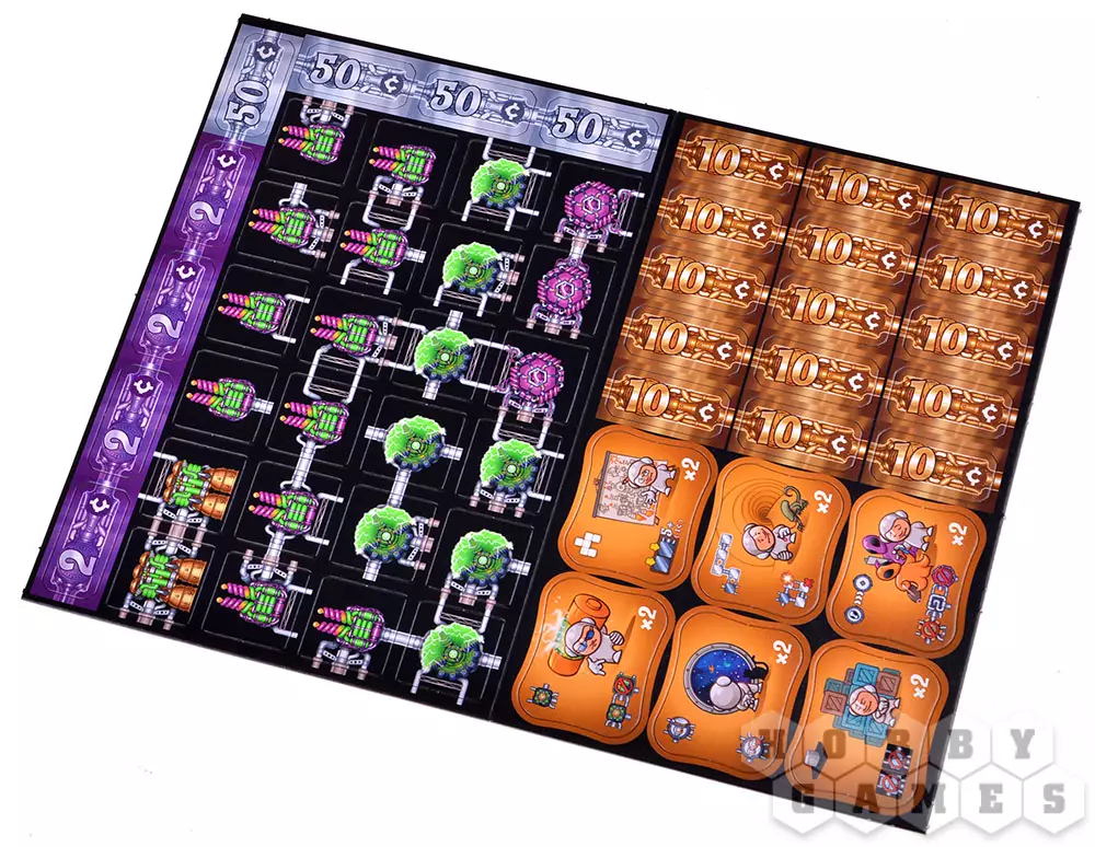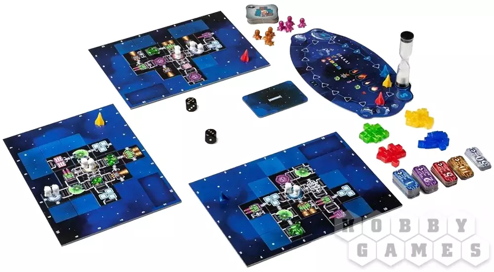 В настольной игре "Космические дальнобойщики" вам предстоит отправиться в путешествия по просторам бескрайней вселенной: мотаться из одной системы в другую, доставлять всякое разное, ну и, конечно же, зарабатывать денежки! Но прежде чем отправиться в полёт, вы должны построить свой собственный космический корабль. Деталей целая куча, причём буквально! Но чтобы собрать что-то стоящее, придётся немного покопаться: не всякая деталь сгодится для сборки, так ещё и конкуренты расхватывают нужные детали... Короче, поторопитесь и будьте готовы ко всему.