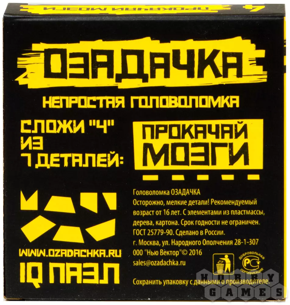 Задача этих головоломок сложить фигуру, которая изображена на коробке. На первый взгляд это может показаться легко и просто, но не стоит недооценивать их сложность, они могут задать жару вашим мозгам. Среди головоломок вы найдёте всевозможные формы, от чисел и букв до различных видов техники.