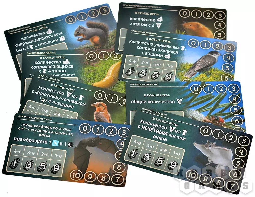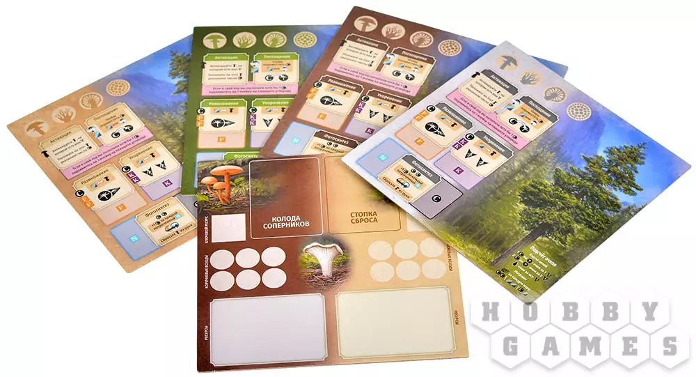 Игра завершается, когда один из участников достигает края планшета углерода, после чего у всех есть последний шанс укрепить свои позиции. Победителем становится игрок, набравший наибольшее количество очков к концу игры. Сравнивайте достижения – и пусть победит самый мудрый хранитель леса!