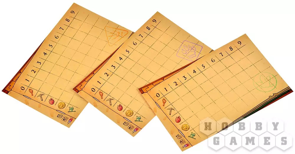 В свой ход вы выбираете одно из двух действий: положить лапку на вход или вернуть их все обратно. Выкладывая лапку, вы прокладываете маршрут в глубины гробницы. Если ваши лапки пересекутся, образуется точка раскопок – именно там можно будет вскрыть комнату или забрать лежащий сундук. Иногда место оказывается пустым, иногда – щедрым на бонусы, а иногда вы наступаете на чужую территорию и попадаете в уже открытую комнату соперника.