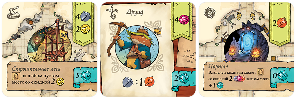 Самое интересное происходит, когда вы решаете собрать лапки назад. Снимая каждую по очереди, вы получаете то, что та принесла по эффекту карты: ресурсы, золото, помощников, возможность вскрыть новую комнату и другие полезные штуки. Главное – не копать в пустоту, иначе вернётесь ни с чем. Но если маршрут составлен удачно, одна активация может запустить цепочку приятных наград.