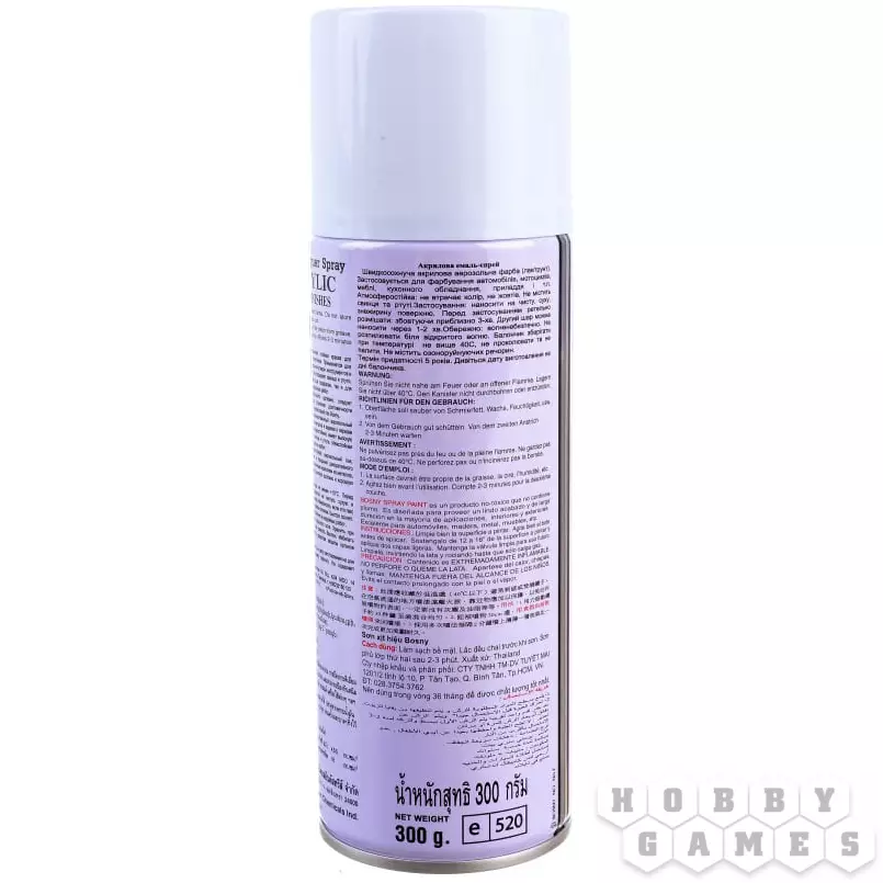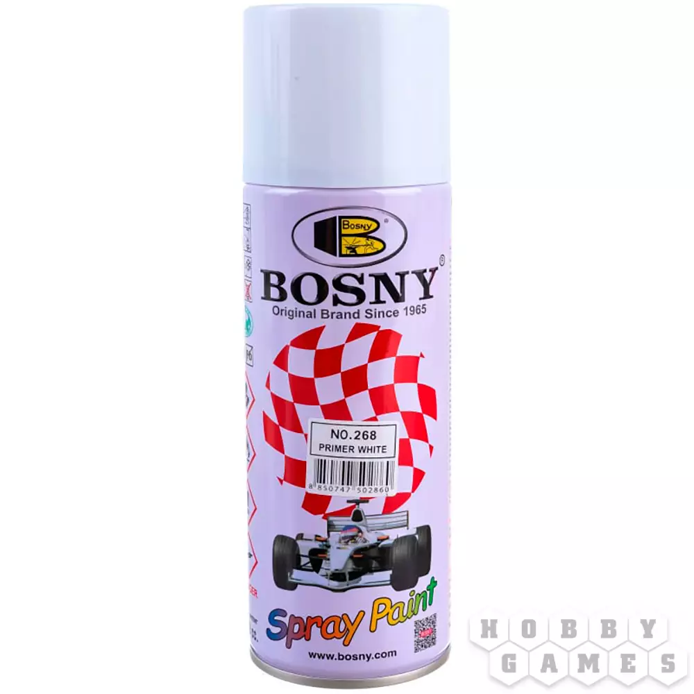 Грунтовка-аэрозоль от компании Bosny. Нужна для того, чтобы создать первый красочный слой, на который в дальнейшем будут ложиться другие краски. Акриловая формула отличается своей безопасностью, а форма аэрозоля позволяет быстро загрунтовать большое количество миниатюр. Добавьте цвета вашим настольным баталиям!