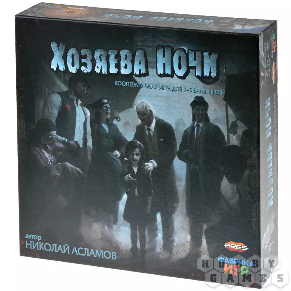 "Хозяева ночи" – это кооперативная настольная игра, где вы будете управлять вампирами, что желают подчинить своей воле город. Единственный способ сделать это – провести ритуал Кровавой луны, для которого вам придётся тщательно планировать действия, расправляться с агентами Инквизиции, перемещаться по городу и прибегать к магии. Днём вы будете скрываться от инквизиторов и наблюдать за городской жизнью, а ночью – выходить на охоту, вербовать приспешников и готовиться к ритуалу. Но время играет не на ваc: чем дольше вы колеблетесь, тем сложнее будет провести ритуал Кровавой луны, а потому не дайте загнать себя в угол и действуйте решительно!