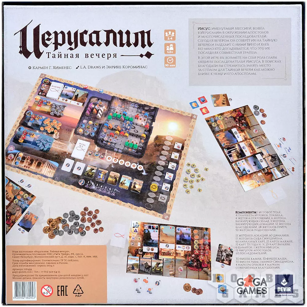 "Иерусалим: Тайная вечеря" – это стратегическая игра о гонке за место на Тайной вечере. Необычный сеттинг, глубина решений и напряжённая динамика переносят игроков на 2000 лет назад.